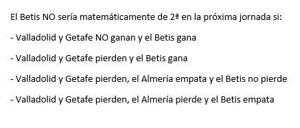 Pues esto es todo, por parte del Betis, decir que se irá a segunda con la siguiente combinación de resultados